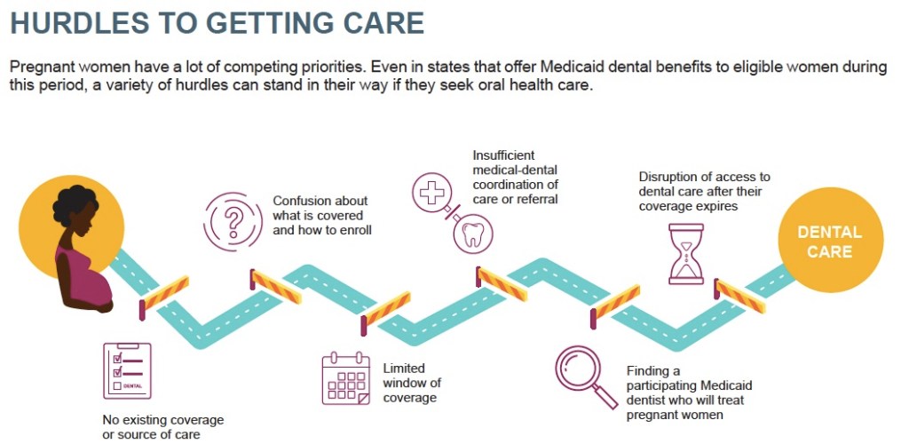 As previously discussed, teledentistry is an innovative strategy to increase access to dental care services. Currently, 49 states include Medicaid reimbursement for telemedicine programs (Center for Connected Health Policy, 2018). However, not all states include teledentistry as part of telemedicine programs. Nationally, dental coverage for pregnant women varies per state and therefore telehealth coverage is also affected (AZDHS, 2009). Few states offer teledentistry reimbursement through the state’s Medicaid program and it is often limited to “synchronous” (live video) interactions (ASTDD, 2019). Additionally, there are challenges with reimbursement as some insurances do not consider dental hygienists a part of teledentistry services as a rendering provider.